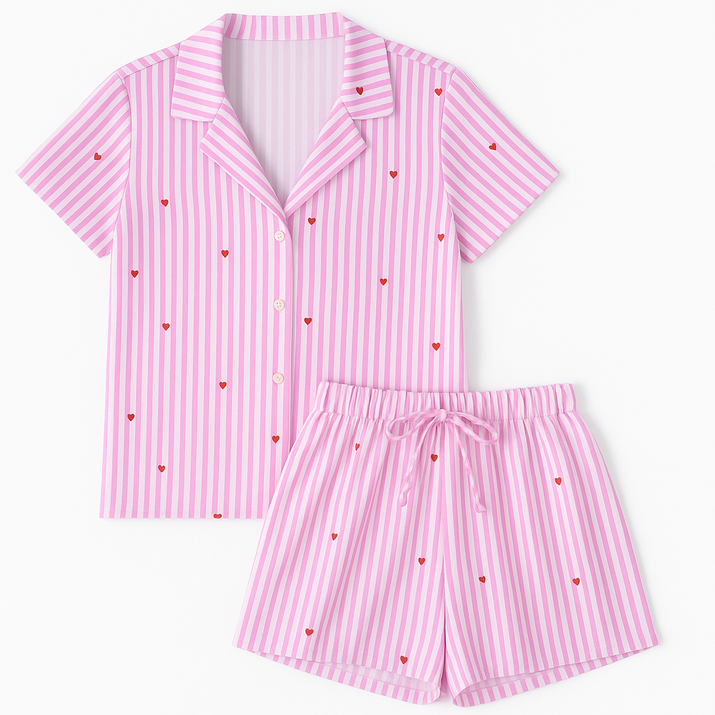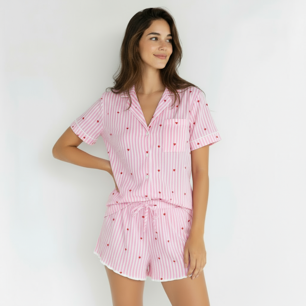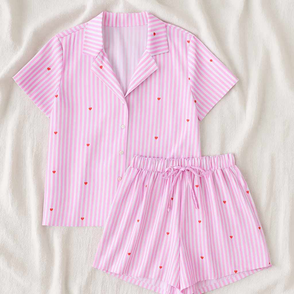 "I love how soft and light this pajama set feels. The fabric is really comfortable, and the design is super cute. It fits nicely and feels easy to wear for lounging or sleeping."