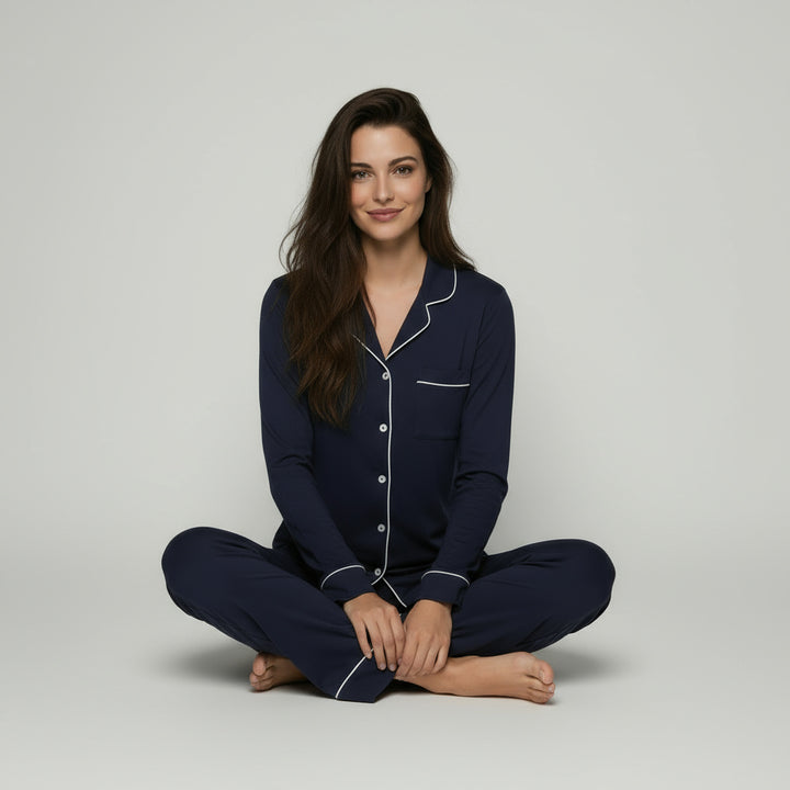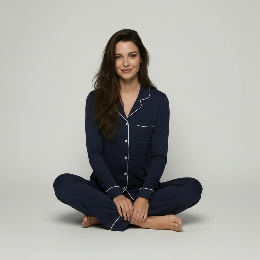 Bamboo Long Sleeve Pajama Set – Navy Blue