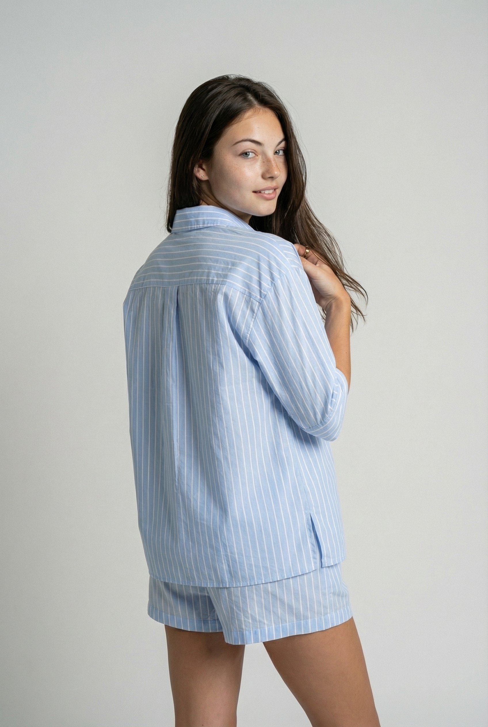 Short Striped Pajama Set – Light Blue